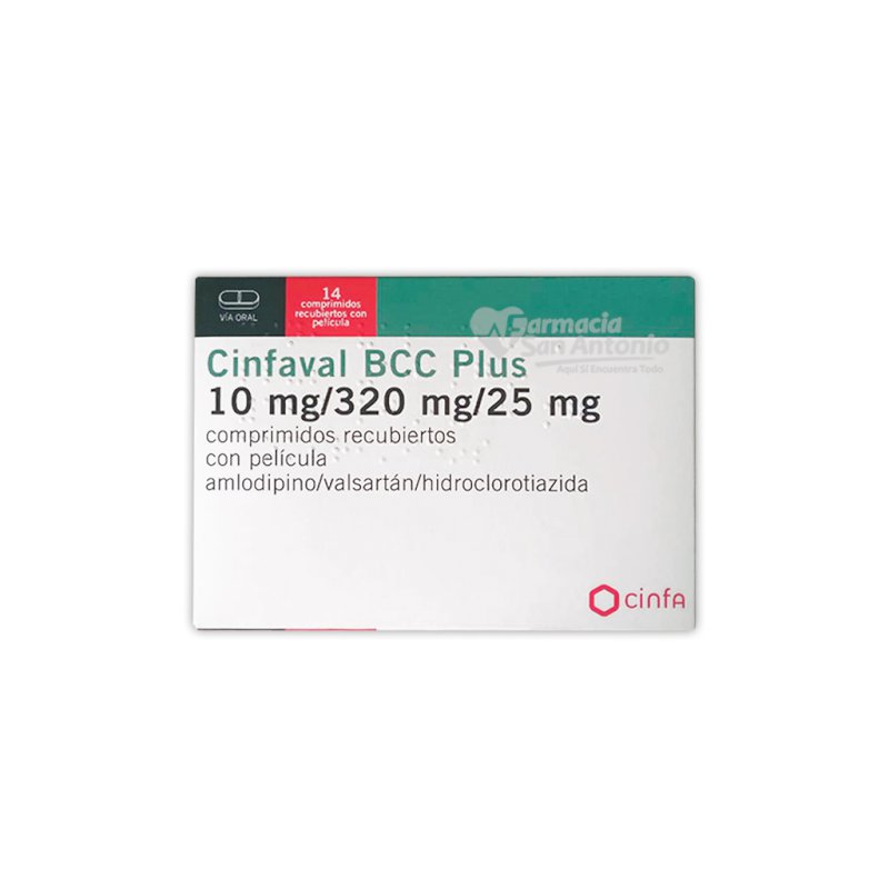 Componentes: Amlodipino 10mg, valsartán 320mg, hidroclorotiazida 25mg, Exc. c.s.