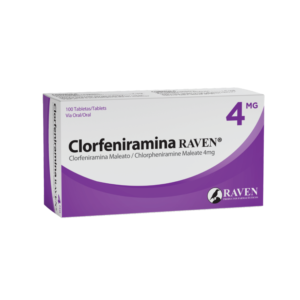 Clorfeniramina 4mg Raven tabletas caja por 100 unidades.