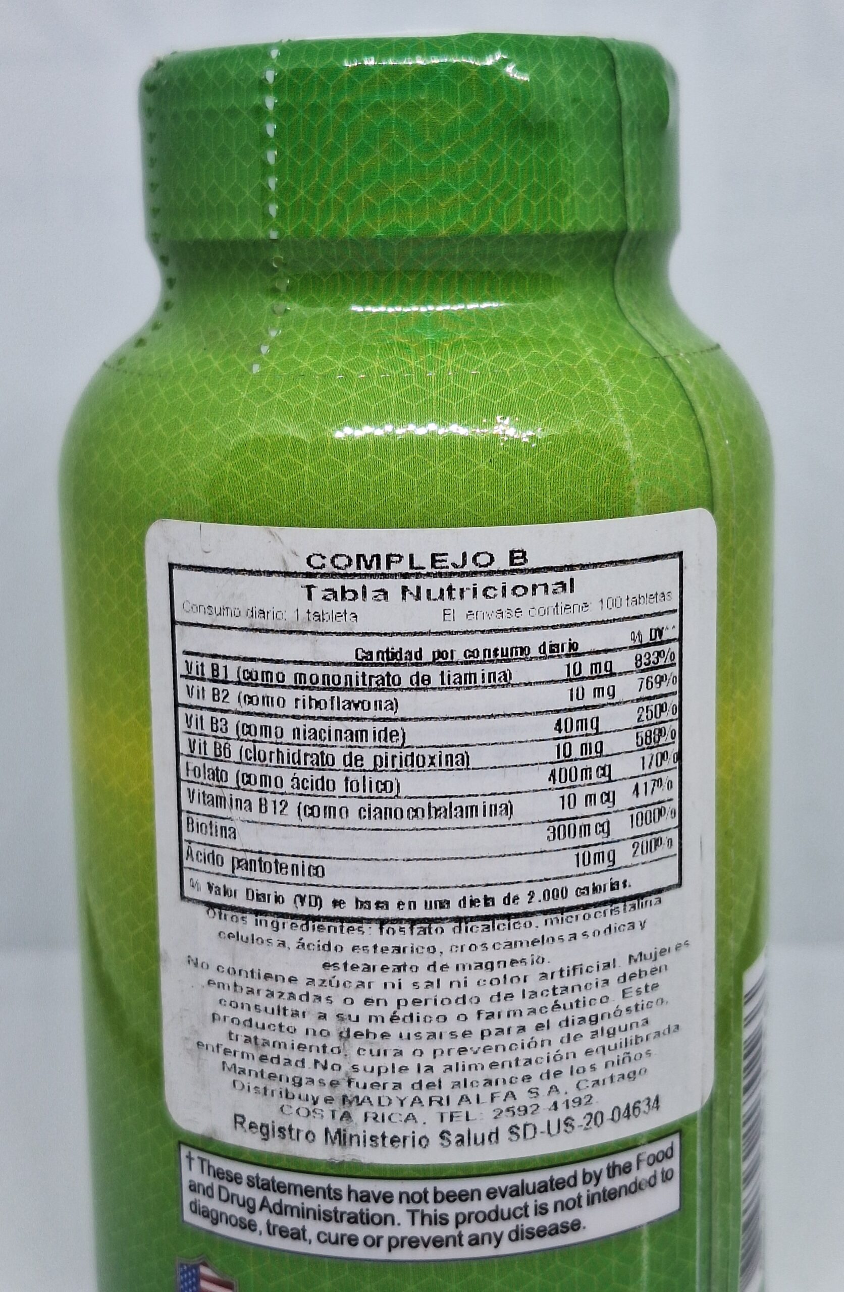 Componentes: Vitamina B1, vitamina B2, vitamina B3, vitamina B6, ácido fólico, vitamina B12, biotina y ácido pantoténico.