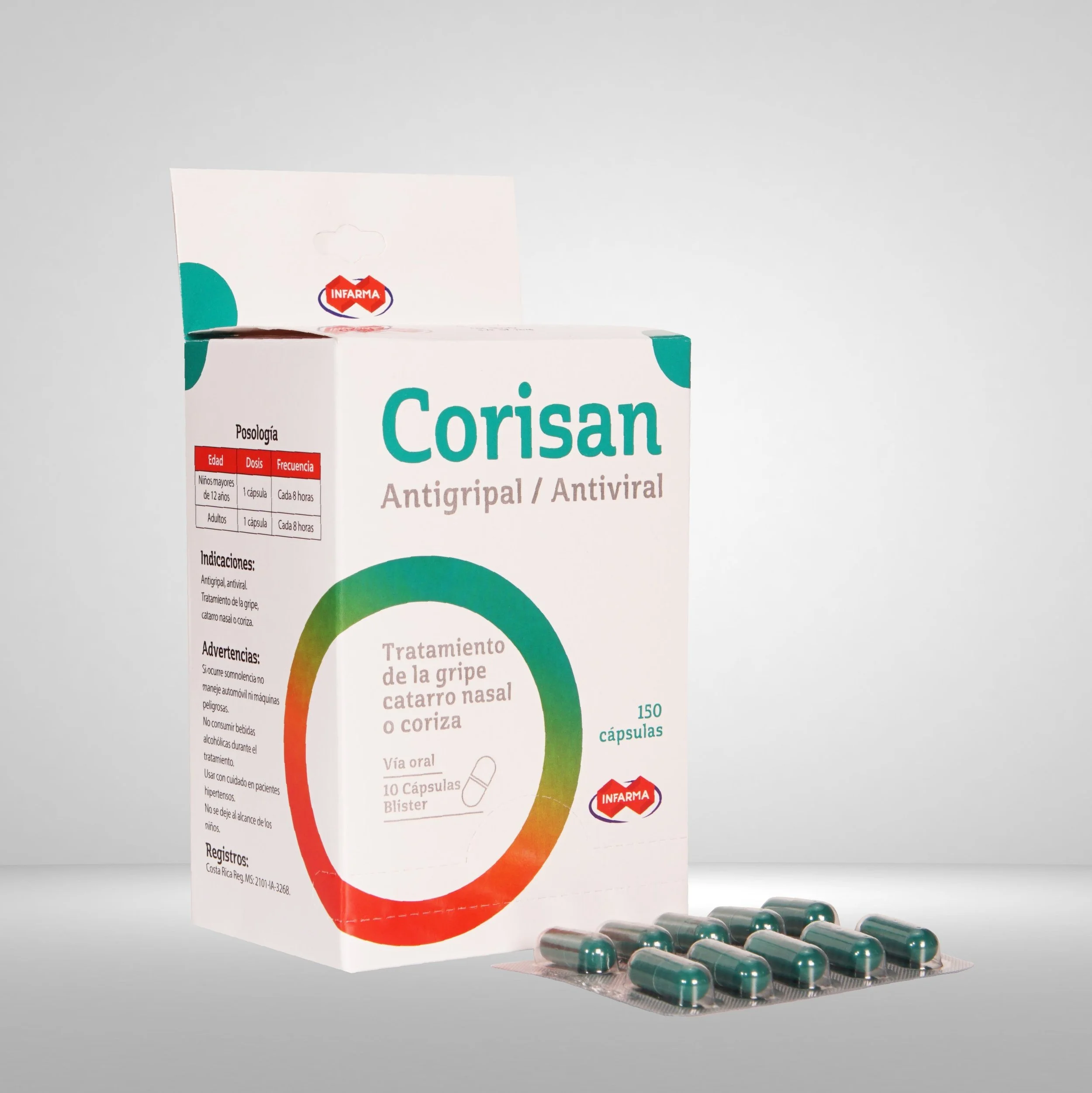 Corisan cápsulas caja por 150 unidades.