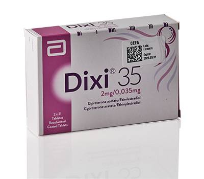 Componentes: Cada tableta contiene:  Ciproterona acetato 2mg, Etinilestradiol 0.035mg, Exc. c.s.