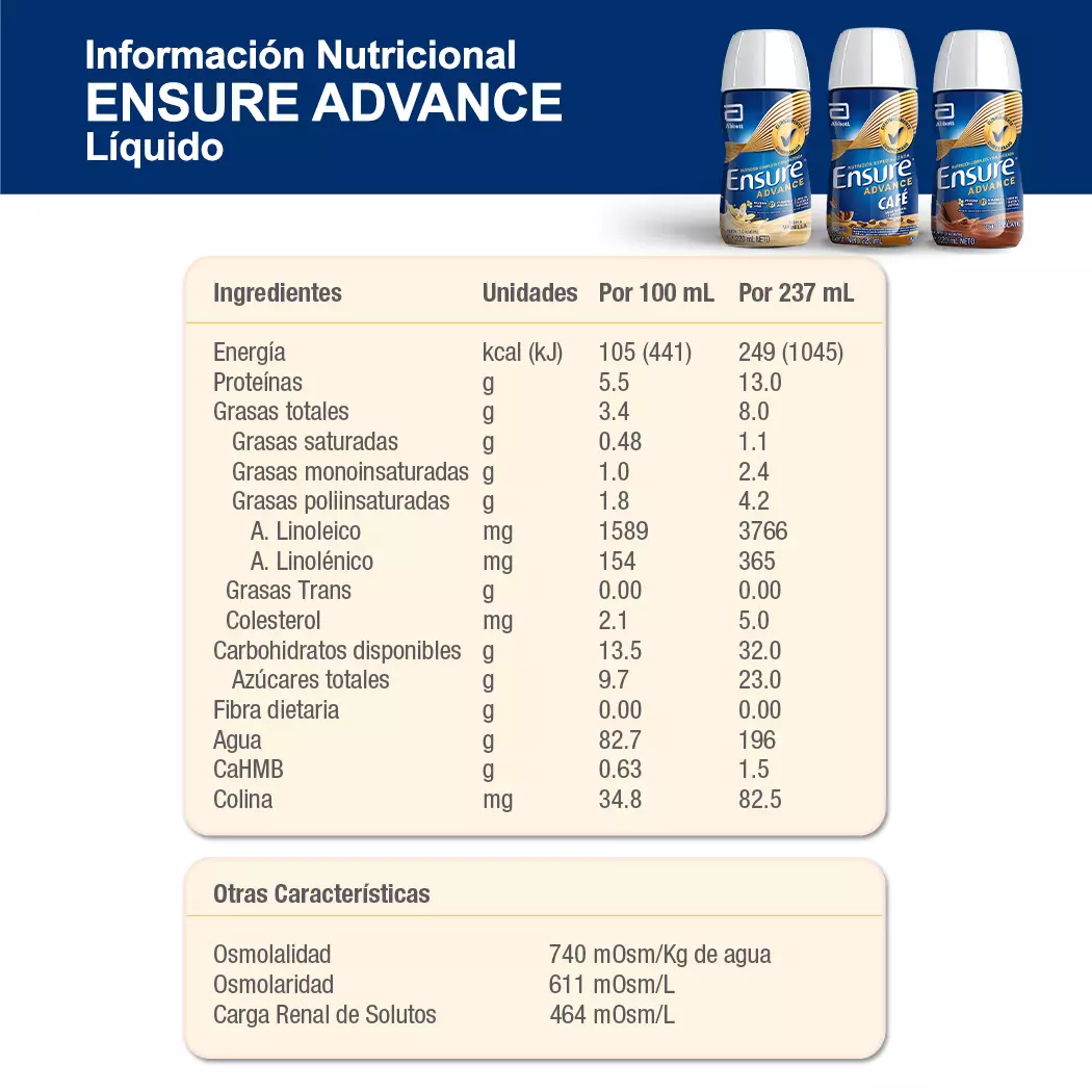 Bebida sabor vainilla elebora a base de 28 vitaminas y minerales, omega 3 y 6, proteina +HMB.