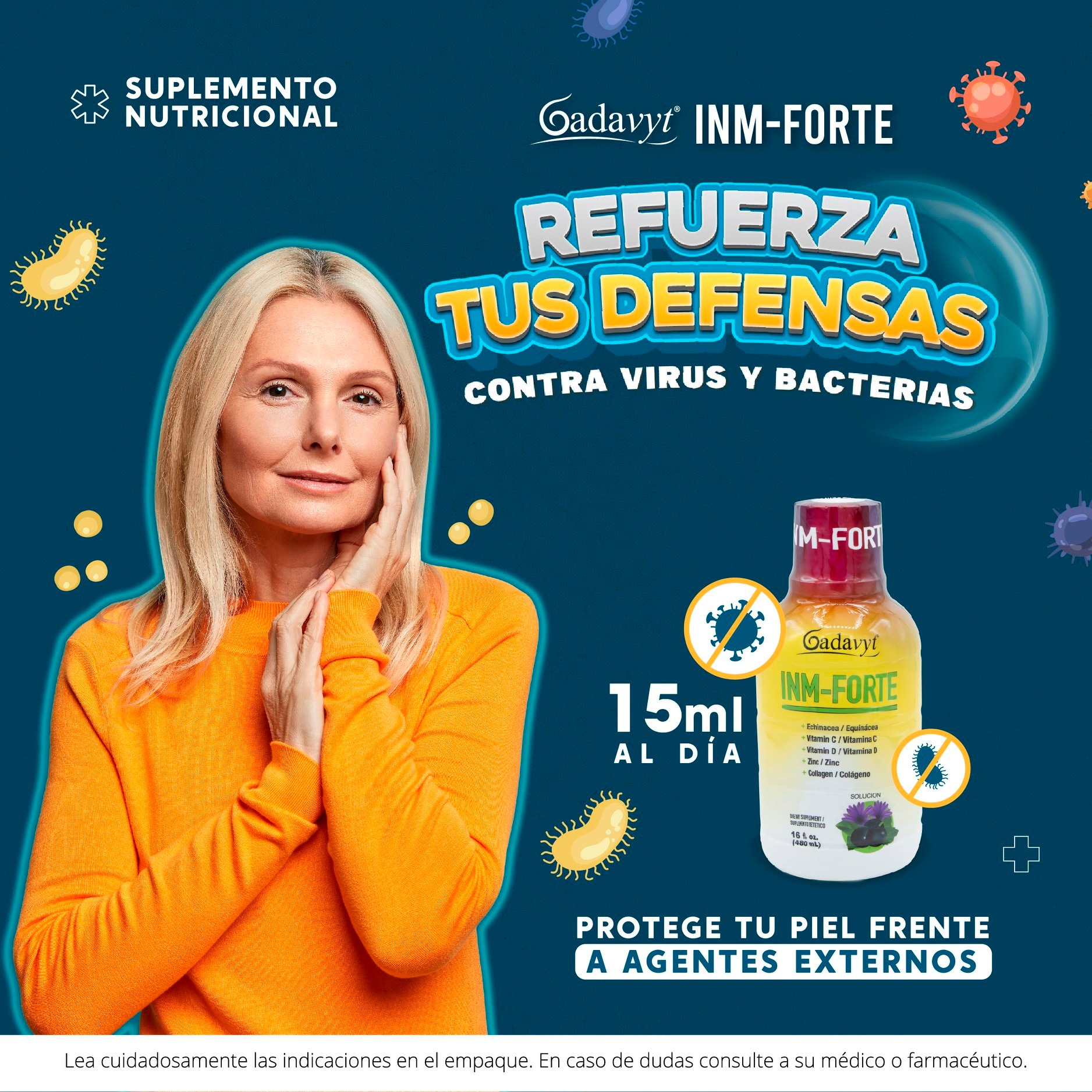 Componentes: Equinácea, vitamina C, vitamina D, zinc, colágeno.