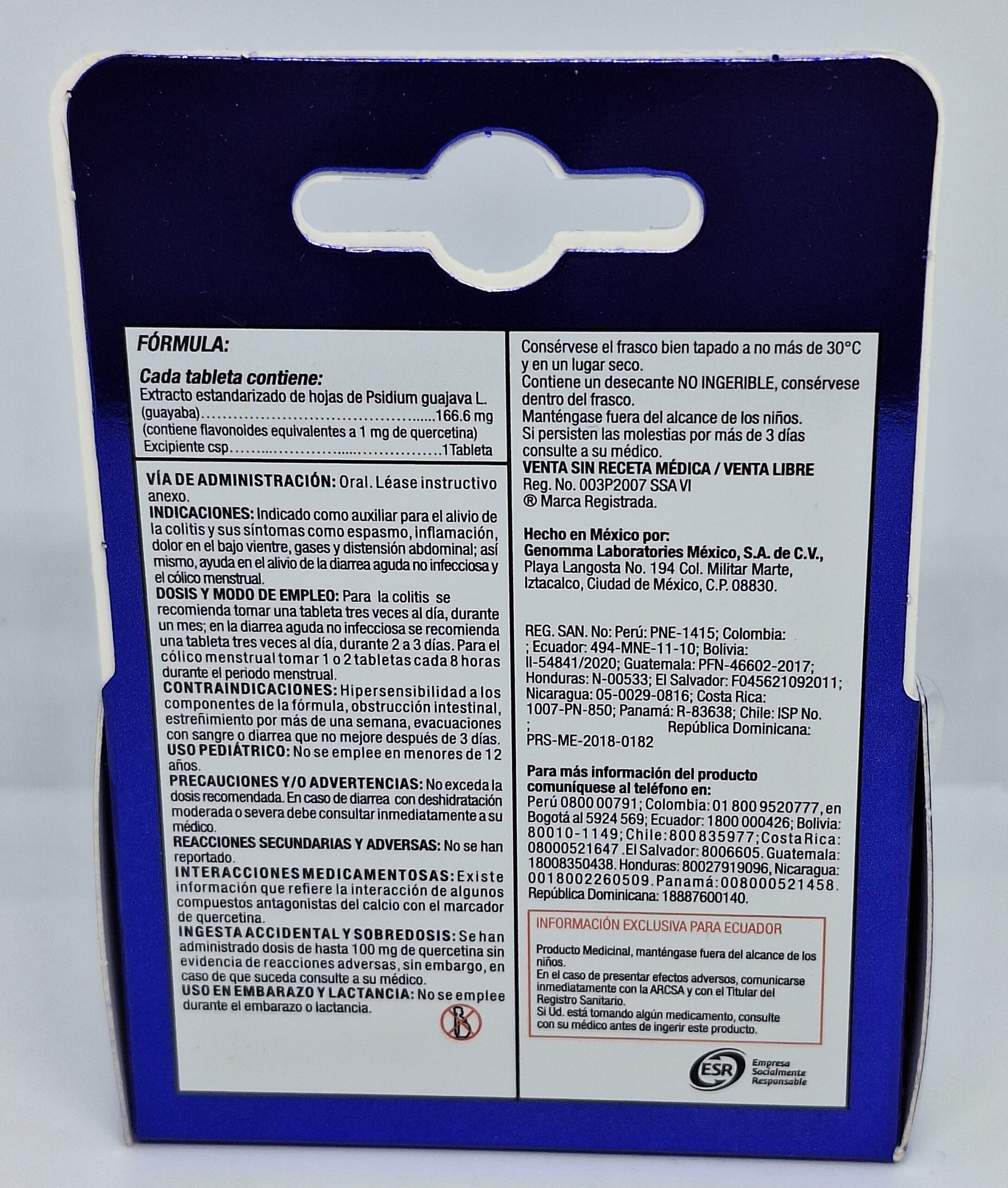Cada tableta contiene 166.6 mg de extracto de Psidium guajava.